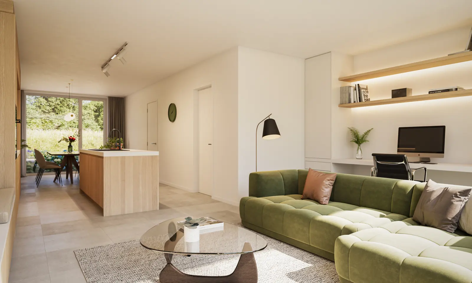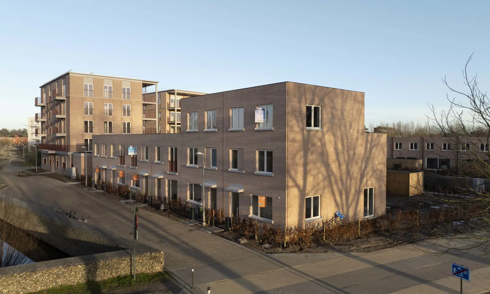 For controlling underfloor heating and producing hot water, the apartments are connected to a collective system (Esco Noven), while the houses have their own individual geothermal heat pump. During the summer months, all units can be passively cooled on an individual basis. The result? A highly efficient E-level of 20, significantly lower energy costs, and a well-equipped home! This phase completely avoids natural gas.