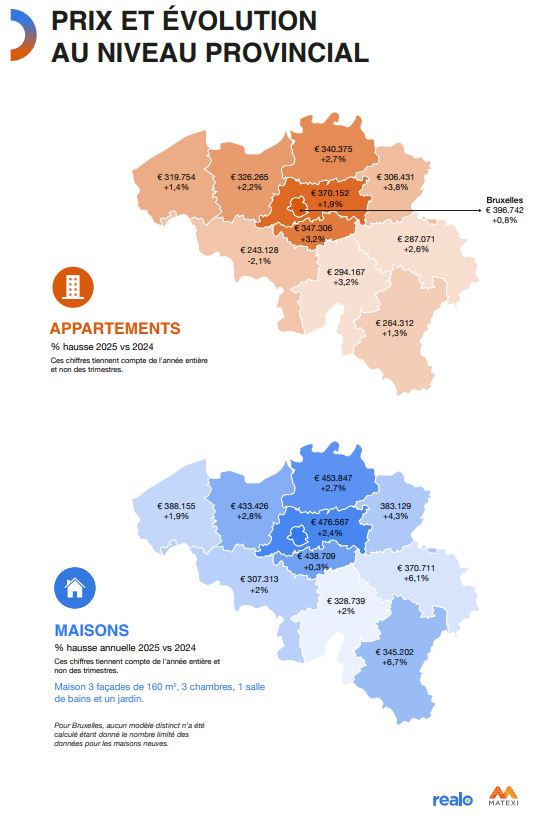 Fabrice Luyckx, data analyst chez Realo : « La forte hausse des taux d’intérêt tout au long de 2025 a considérablement augmenté les charges mensuelles de logement pour les candidats-acquéreurs et a progressivement exclu une part croissante d’entre eux du marché. Nos calculs montrent qu’une réduction de la TVA de 21 % à 12 % ferait augmenter d’environ 37 500 le nombre de ménages capables de s’offrir un appartement neuf, soit une hausse de 20 % par rapport à la situation actuelle. Les évolutions de prix observées en 2025 démontrent que les mesures fiscales ont un impact réel sur les prix. Comme indiqué dans des publications antérieures, telles que l’indice des prix Immoweb-Belfius, la baisse des droits d’enregistrement en Flandre joue un rôle important dans la hausse des prix du logement existant. De même, les augmentations plus marquées des prix des maisons neuves observées uniquement en Wallonie peuvent être liées à la réduction des droits d’enregistrement à 3 % pour le neuf. »