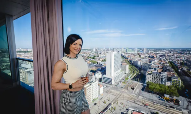 Il y a quelques années, alors qu'elle se rendait chaque jour à la salle de sport, elle a assisté à la reconversion de l'Antwerp Tower, un ancien immeuble de bureaux, étage après étage. En cherchant à en savoir plus, elle a soudainement réalisé qu'elle voulait vivre là. Si ses moyens le lui permettaient, elle achèterait un appartement à l'un des cinq étages supérieurs.