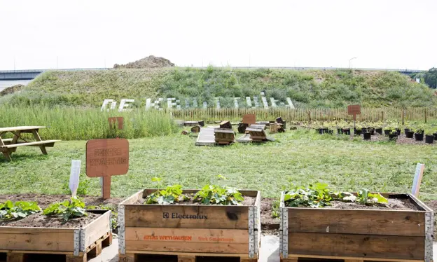 De Kruitfabriek a également été élargie par le Kruittuin, une zone de verdure temporaire visant à inspirer les gens à profiter d'un tel espace vert. On peut y faire du sport, pique-niquer ou encore semer et cueillir des fleurs et des herbes.