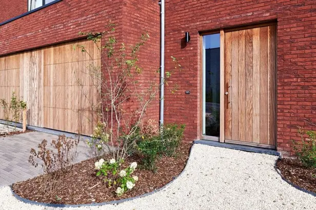 Allée revêtue de pavés en terre cuite perméables et accès à la maison en gravillons (Evergem – Droogte)