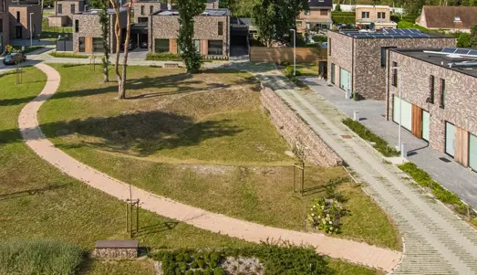 Tot slot zetten we als buurtontwikkelaar zo veel mogelijk in op waterdoorlatende verharding. Dankzij de aanleg van openbare of privatieve toegangen in bv. poreuze betonstraatstenen met gras/grindvoeg of in grindverharding, beperken we de verharde oppervlakte en streven we daarbij naar een zo groot mogelijk infiltratieoppervlak.