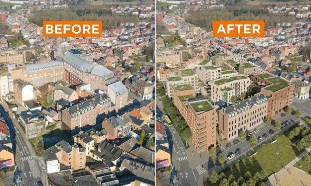 Het voormalige woonzorgcentrum Saint-Charles de Borromée blijft behouden en wordt omgevormd tot kantoren of horeca, terwijl de kapel een gebedsplaats blijft.