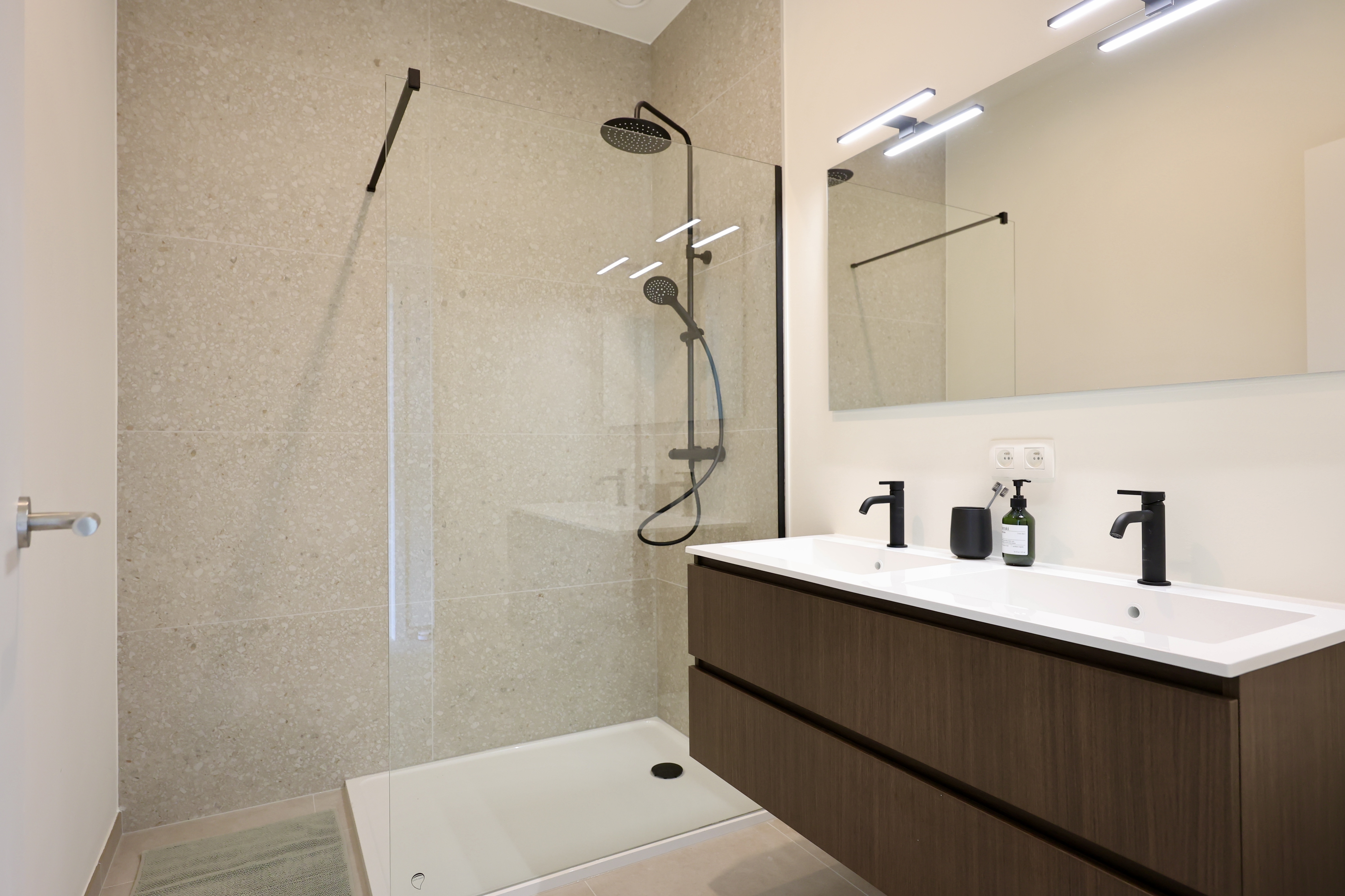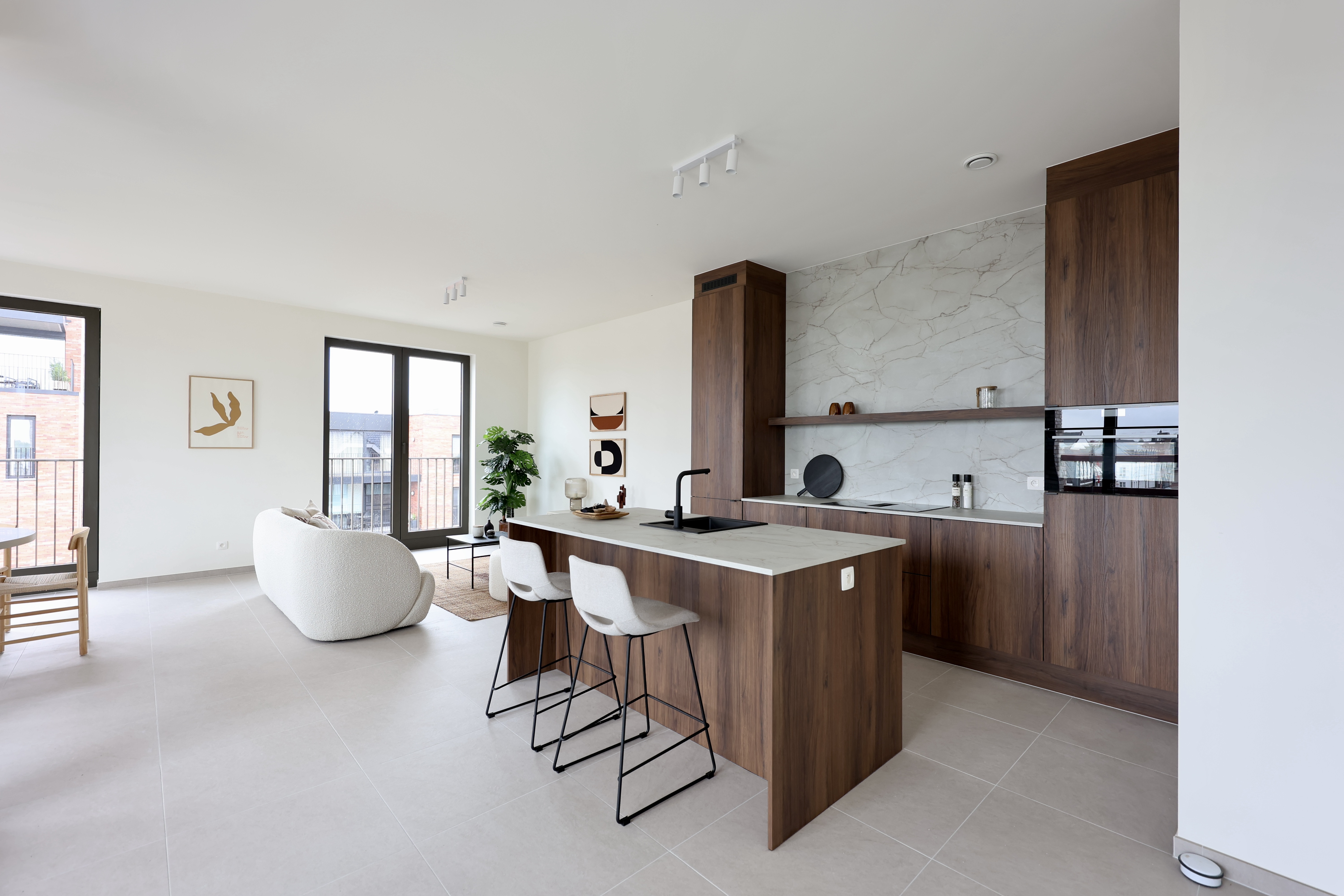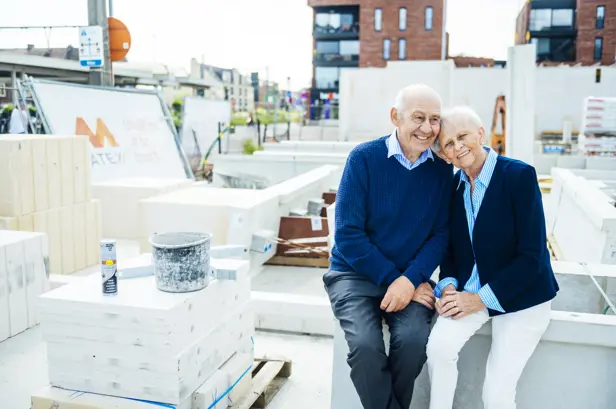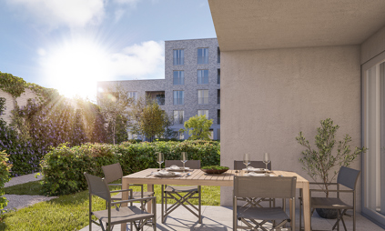 Ook de buitenruimte speelt een belangrijke rol. Bewoners genieten van een groene binnentuin en een collectieve daktuin van 300 m² — bijna zo groot als een tennisbaan — die rust en ontmoeting brengt.