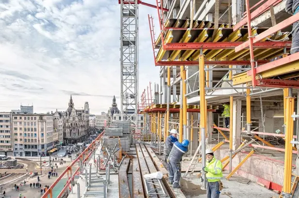 Bouwtechnisch was dat ingewikkeld: eerst de nieuwe structuur bouwen, dan de oude structuur afbreken. “We moesten de funderingen verstevigen en dat terwijl er 30 (bovengrondse + ondergrondse samen) verdiepingen op stonden. En het gebouw heeft geen millimeter bewogen!” Dankzij het ingenieus ontwerp worden de nieuwe vloerplaten gedragen door alternerende uitkragende wanden die een bepalende rol spelen in de ritmiek van de gevel. Met de nieuwe draagstructuur worden grote overspanningen gerealiseerd waardoor een heel vrije planindeling mogelijk wordt.”