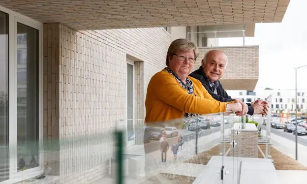 ‘Ik ben graag onder de mensen en zeker nu we een dagje ouder worden vind ik het fijn om beweging om me heen te hebben,’ zegt Marina. Net daarom kozen Alfred en Marina voor een tweeslaapkamerappartement op de eerste verdieping langs de straatzijde. ‘We hebben het appartement gekozen dat perfect bij ons past: met veel licht en ruimte en een mooi terras, waar we gemakkelijk met 6 personen zitten en een goed uitzicht hebben over de buurt.’
