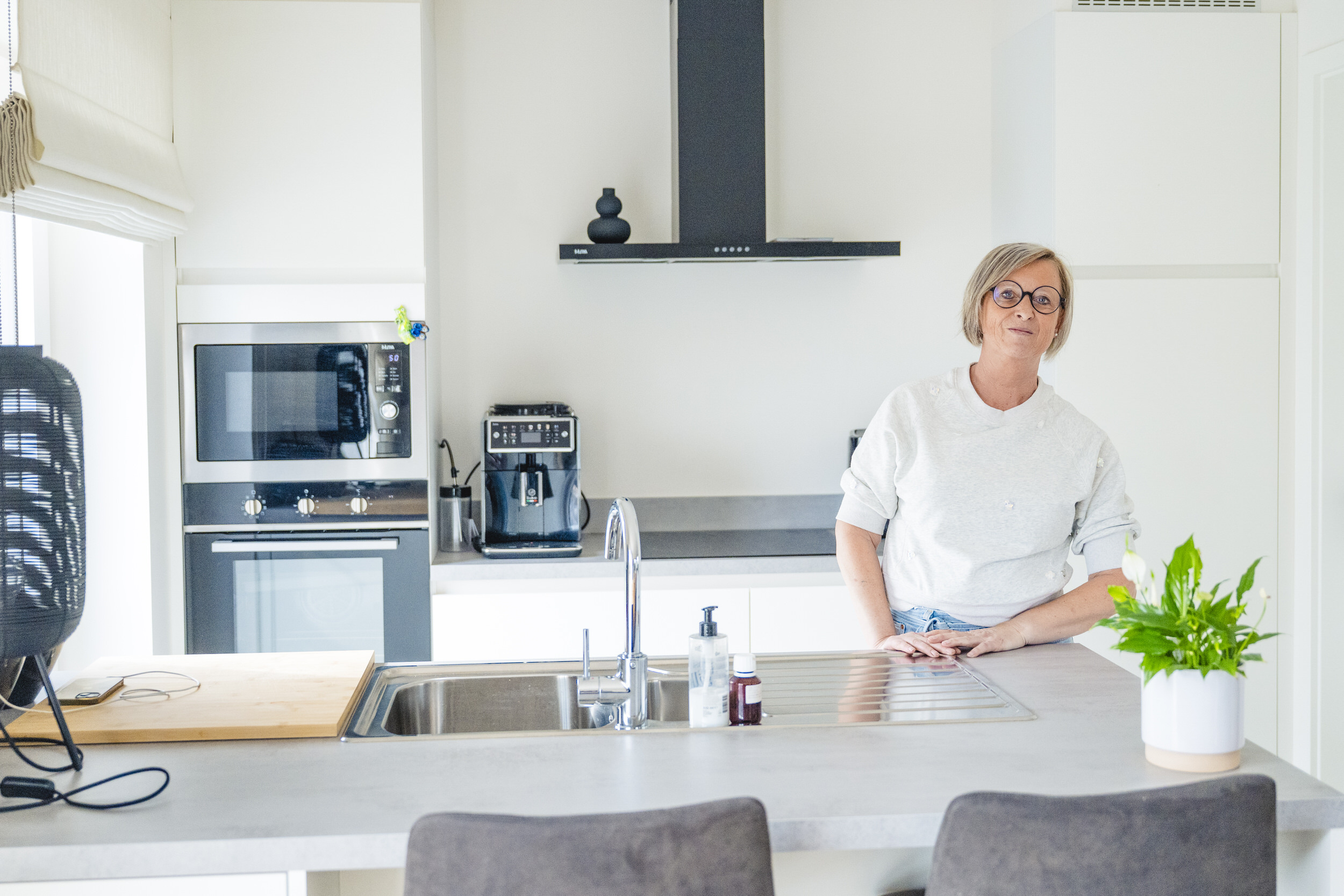 “Ik vond het belangrijk dat ik zelf alle afwerking nog kon kiezen. Ik heb een prachtige keuken die helemaal binnen het budget paste. De keukenfirma maakte alles zo praktisch mogelijk,” legt ze uit.