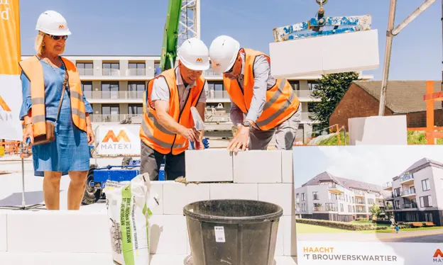 Schepen van Ruimtelijke Ordening Jos Verdeyen legde de eerste steen: “Het nieuwe woonproject ’t Brouwerskwartier dat Matexi realiseert aan de Stationsstraat en Klapgat is het sluitstuk van de ruimere reconversie van het centrum. Het biedt een antwoord aan jongeren en senioren die in het centrum van Haacht een nieuwe thuis zoeken. Vorig jaar openden we enkele meters verderop het lokaal dienstencentrum De Klapper, en de assistentiewoningen van vzw Thuis Leven werden in 2021 in gebruik genomen. Die combinatie draagt bij tot een Hecht Haacht.”