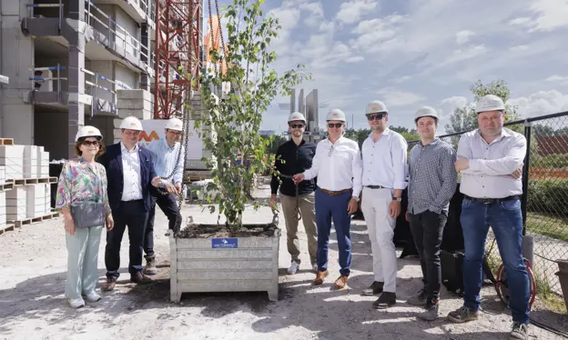 Na 1,5 jaar van intensieve bouwwerken werd maandag het hoogste punt van de ruwbouw van Parkville in Blankenberge bereikt. Buurtontwikkelaar Matexi, aannemer Van Tornhaut en burgemeester Björn Prasse grepen dit moment aan om een eeuwenoude traditie in ere te houden. Samen plaatsten ze een meiboom op het hoogste van de vijf gebouwen, dat zeven verdiepingen telt.