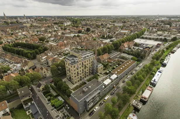 Om optimaal van de unieke ligging en het zonlicht te profiteren, beschikken alle wooneenheden over een dubbelzijdige oriƫntatie en over ruime terrassen. Het terrein ligt vlak bij het historische centrum van Brugge en sluit aan op de Kolenkaai, die werd heraangelegd tot groene wandel- en fietszone. Hier betekent wonen leven in de sfeer van een uniek stukje industrieel erfgoed, maar dan naar eigentijdse normen.