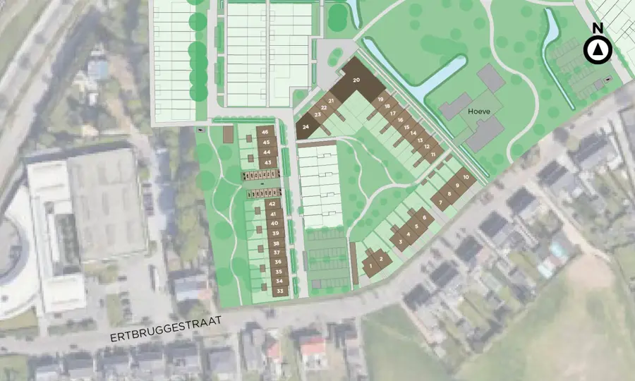 Wonen in Ertbrugge betekent omringd worden door groen. Het woonproject zet sterk in op integratie van tuinen, een park en groendaken, waardoor je geniet van een echte oase van rust. Bovendien ligt het project vlak bij natuurparels zoals de Fortvlakte, natuurgebied Zwarte Arend en het prachtige natuurdomein Ertbrugge. Dit 40 hectare grote gebied is een van de groene longen van Antwerpen en vormt een vredig toevluchtsoord voor mens en dier in de drukke stadsrand. Maak een boeiende wandeling door afwisselende landschappen zoals weilanden, fauna-akkers, bossen en statige dreven, en ontdek de schoonheid van dit unieke stukje natuur.