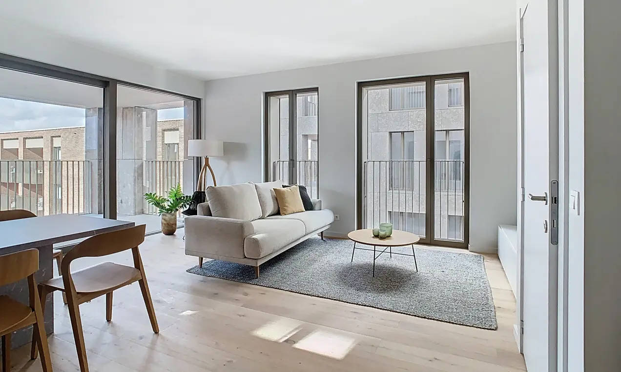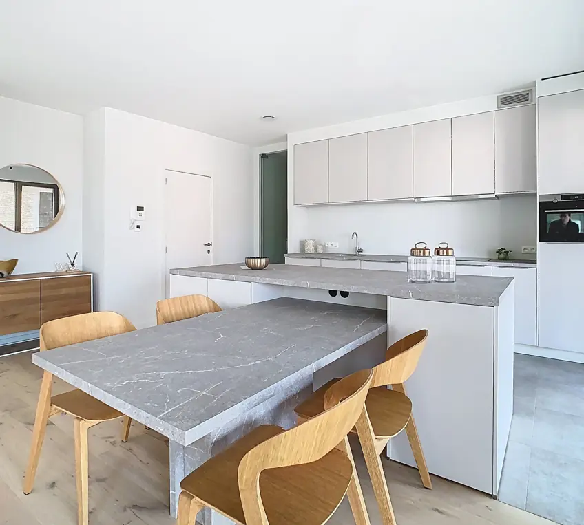 Met een woonoppervlakte van 100 m² is dit appartement strak en efficiënt ingedeeld, zonder ook maar een vierkante meter te verspillen. De echte troef schuilt echter buiten: een uitzonderlijk groot terras van 50 m² waar je volop kunt genieten van de buitenlucht, het uitzicht en de zon.