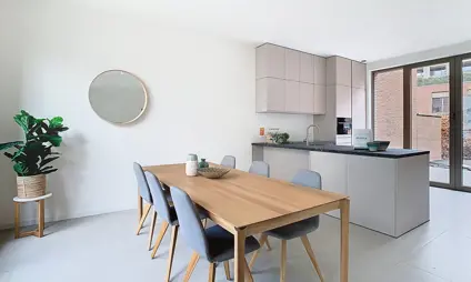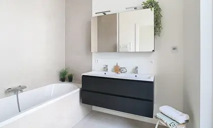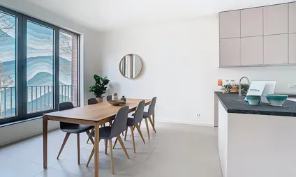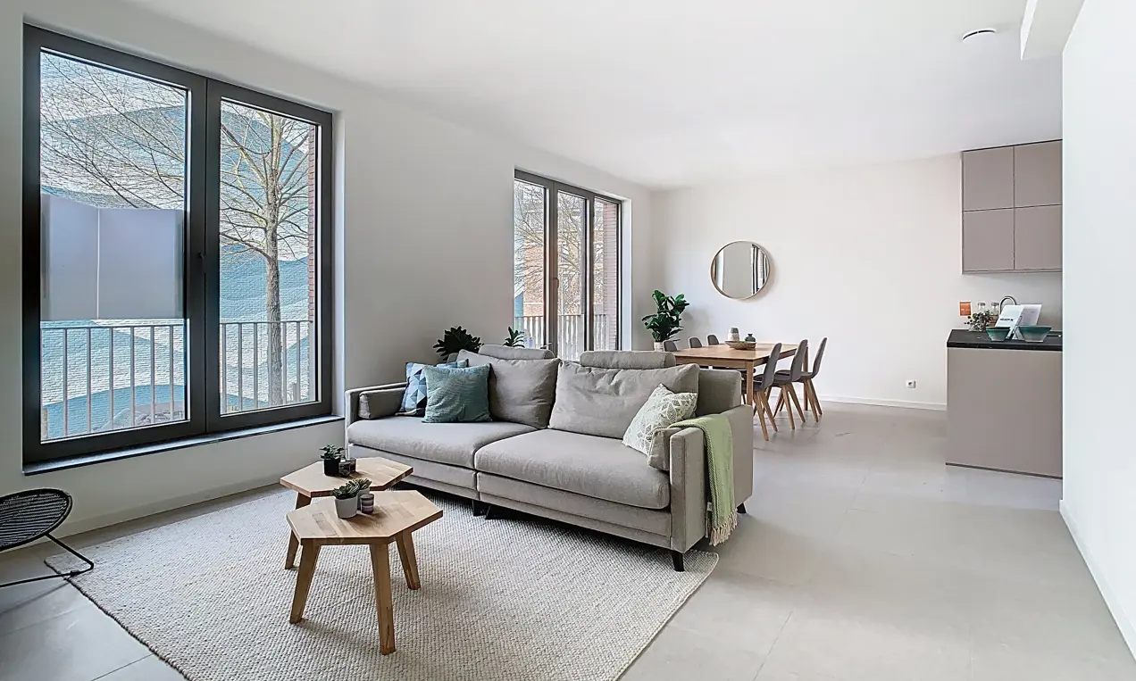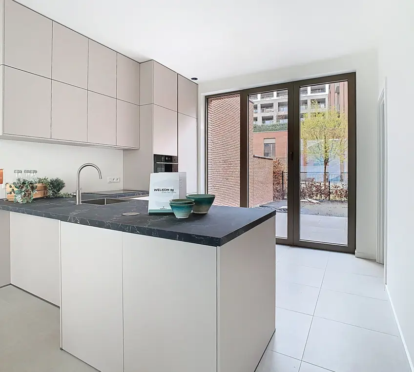 Dit gelijkvloerse appartement van 120 m² met twee slaapkamers trekt meteen de aandacht door zijn grote raampartijen, die het daglicht royaal binnenlaten en het appartement een open, luchtig karakter geven. Buiten wacht een terras van 14 m² én een charmante mini-stadstuin — ideaal voor wie van buiten leven houdt, maar niet wil inboeten op comfort of privacy.