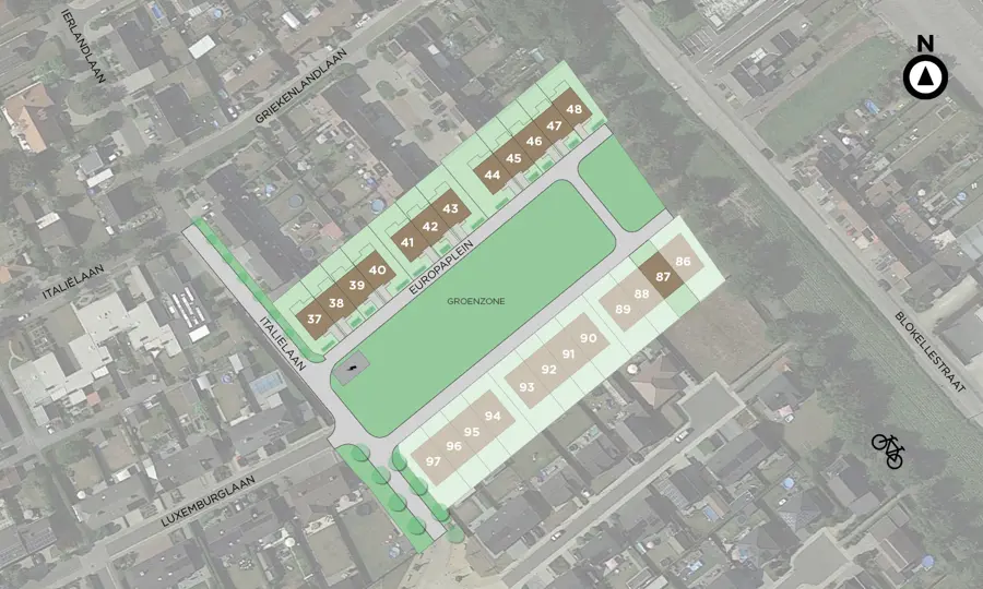 De huizen liggen rond een speelzone die voor groen en biodiversiteit in de buurt zorgt.